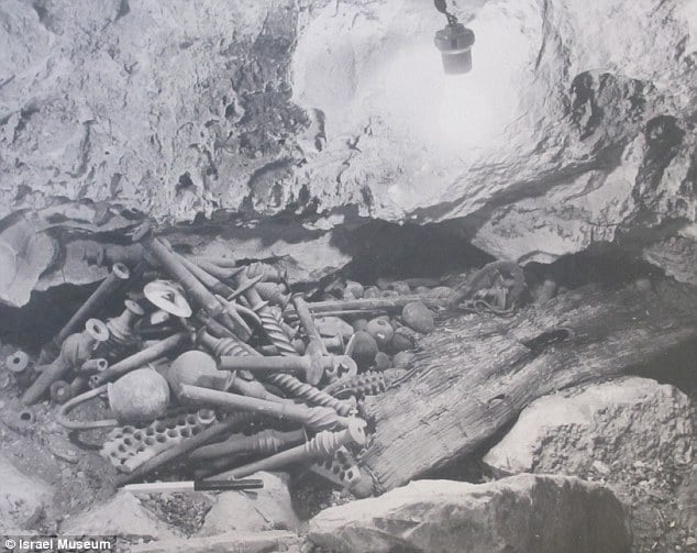 Gli oggetti nella riserva di Nahal Mishmar sembrano essere stati raccolti in fretta, portando a suggerire che i manufatti fossero i tesori sacri appartenenti al tempio calcolitico abbandonato di Ein Gedi, a circa dodici chilometri di distanza, che potrebbero essere stati nascosti nella grotta durante un tempo di emergenza.