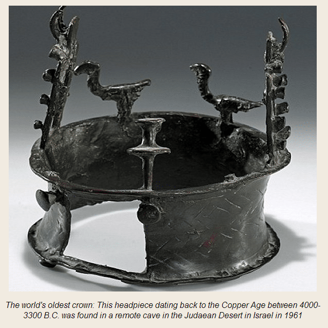 La più antica corona conosciuta al mondo è stata notoriamente scoperta nel 1961 come parte del Nahal Mishmar Hoard, insieme a numerosi altri preziosi manufatti.