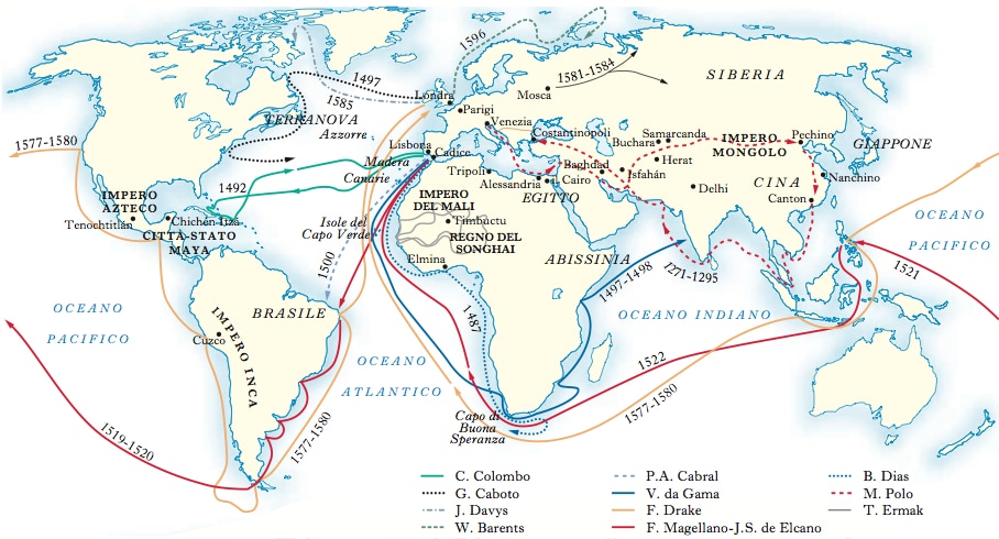 Le recenti invenzioni tecniche e il perfezionamento della bussola garantivano una navigazione sempre più sicura. La casuale scoperta del continente americano a opera di Cristoforo Colombo diede il via alla colonizzazione di vasti territori ricchi di oro e metalli preziosi e alla evangelizzazione di antiche e sconosciute civiltà.